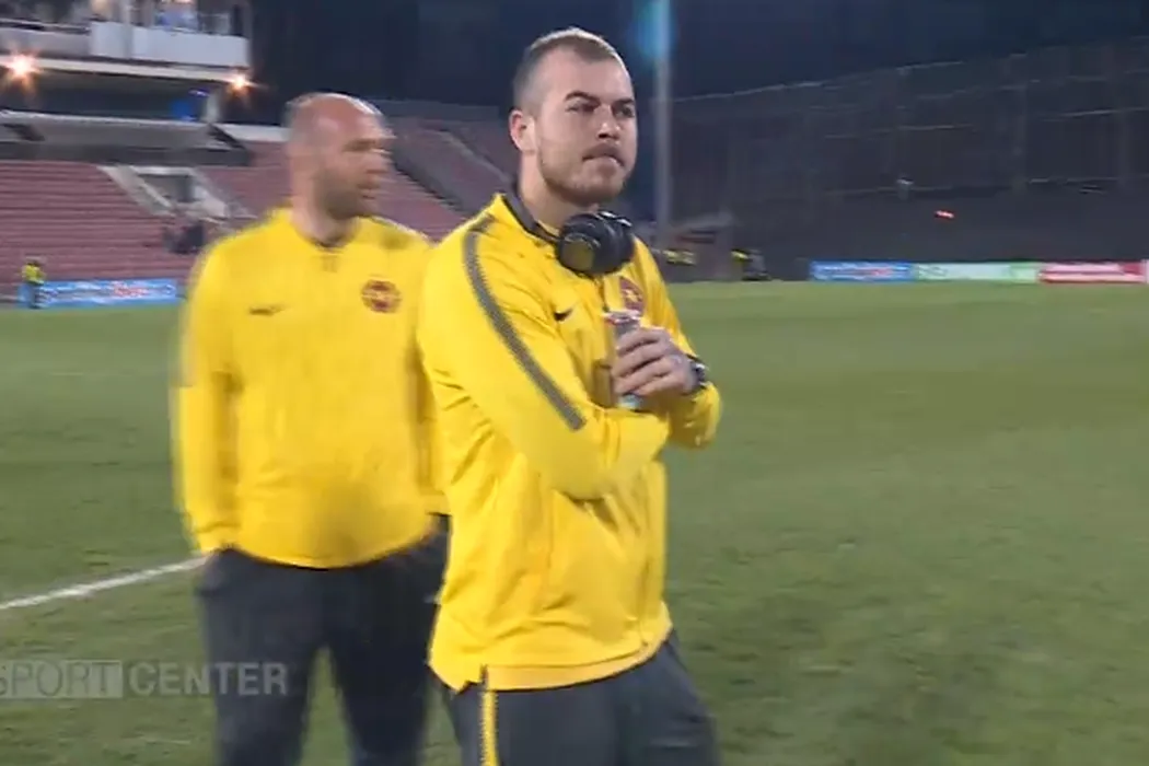 FOTO | Denis Alibec, atenționat după ce a fost reperat cu o băutură în mână înainte de meciul cu CFR: „Riscă! Eu cred că îl ajută, dar îmi aduc aminte că Adi Popa mai făcea așa”
