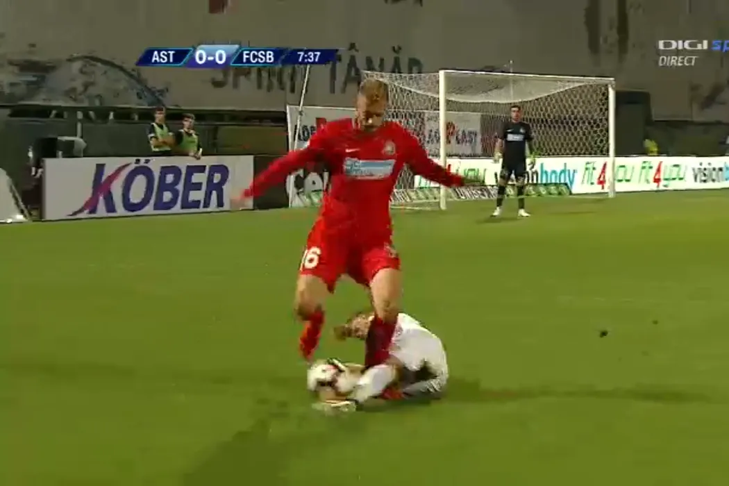 FOTO | Dică, în alertă! Piciorul lui Planic a rămas blocat în gazon la intrarea dură a lui Buș
