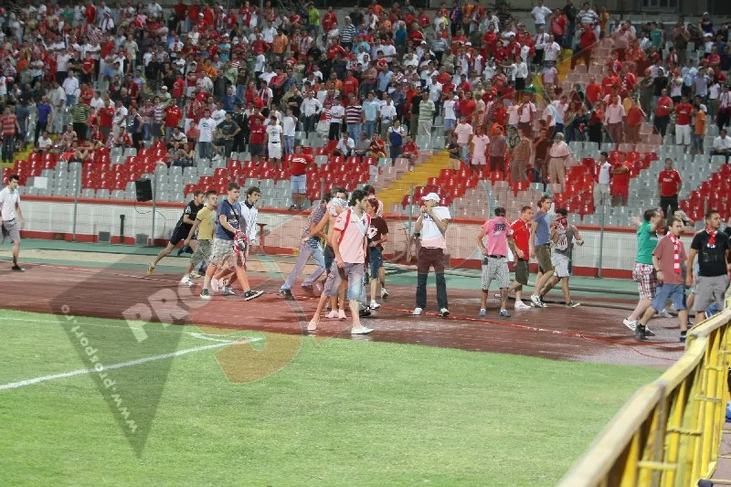 FOTO** Dinamo – Slovan, întrerupt în minutul 88 după ce fanii „câinilor” au intrat pe teren!