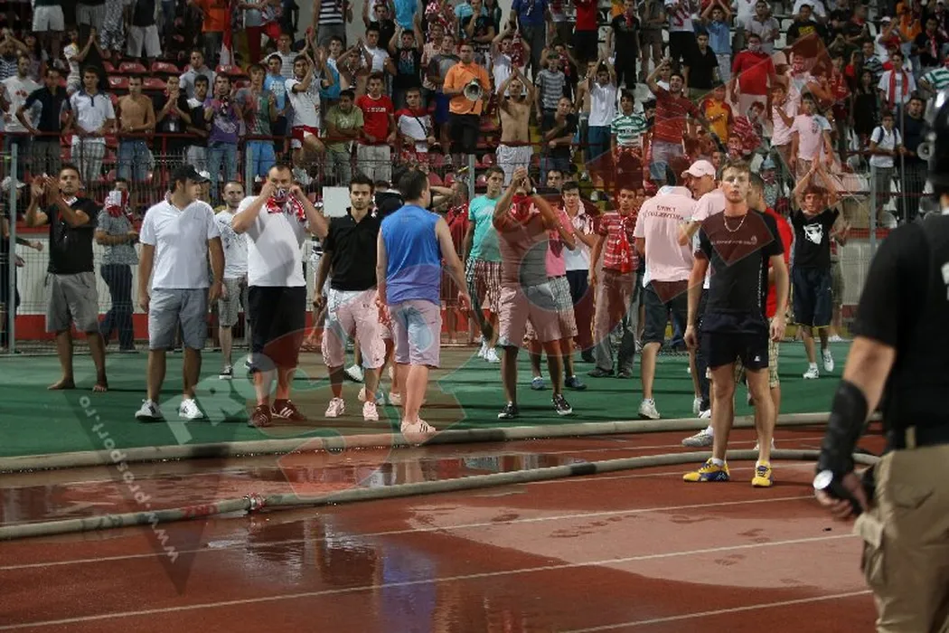 FOTO** Dinamo – Slovan, întrerupt în minutul 88 după ce fanii „câinilor” au intrat pe teren!