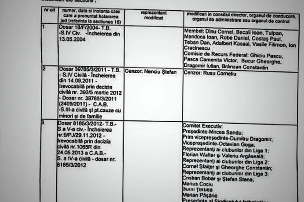 FOTO DOCUMENT | În acte, Comitetul Executiv al FRF e condus de Mircea Sandu! Marcel Pușcaș explică de ce Federația e în ilegalitate! Burleanu, în pericol?