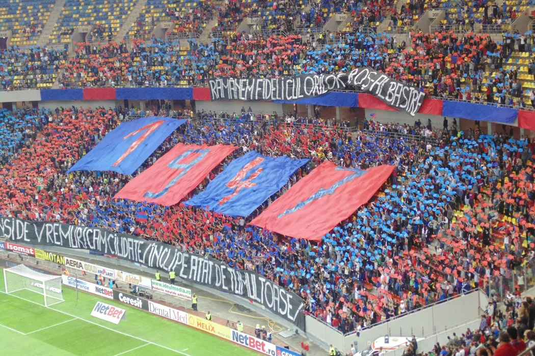FOTO | Duelul coregrafiilor pe Arena Națională. „Rămânem fideli culorilor roș-albastre” vs. „ca Avram Iancu suntem toți”. Fanii FCSB, răspuns prompt: „Voi ca Avram Iancu? Mai bine…”