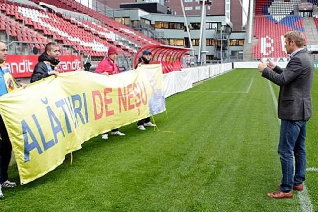 FOTO EMOȚIONANT** Fanii Stelei, alături de Neșu de 1 decembrie! Suporterii „roș-albaștri” au donat galeriei lui FC Utrecht un banner!