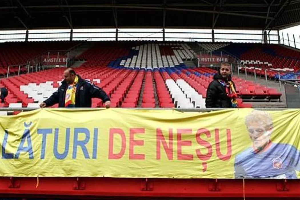 FOTO EMOȚIONANT** Fanii Stelei, alături de Neșu de 1 decembrie! Suporterii „roș-albaștri” au donat galeriei lui FC Utrecht un banner!