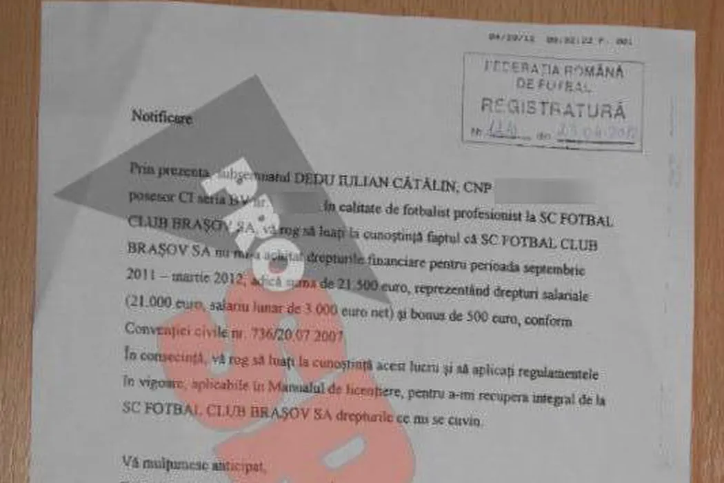 FOTO EXCLUSIV Dedu pune Steagul jos!** Un jucător al brașovenilor joacă tare: fără acordul lui clubul nu ia licența