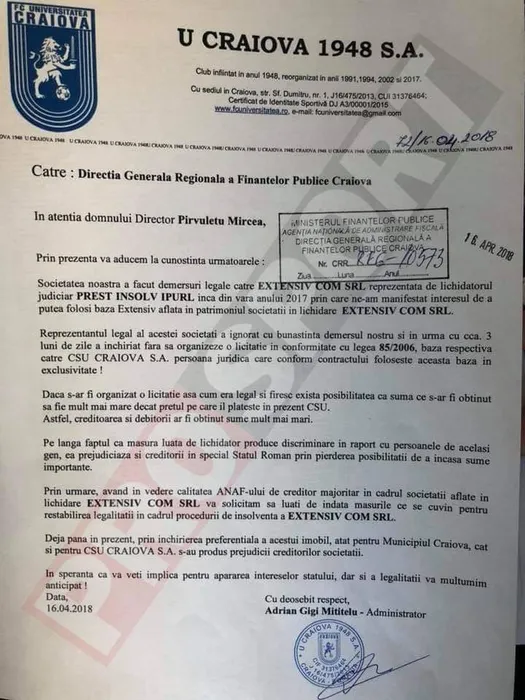 FOTO EXCLUSIV. Documentele care dovedesc că Adrian Mititelu a cerut oficial să joace pe Extensiv și pe Oblemenco, dar a fost blocat de autoritățile locale, care au preferat echipa lui Mihai Rotaru