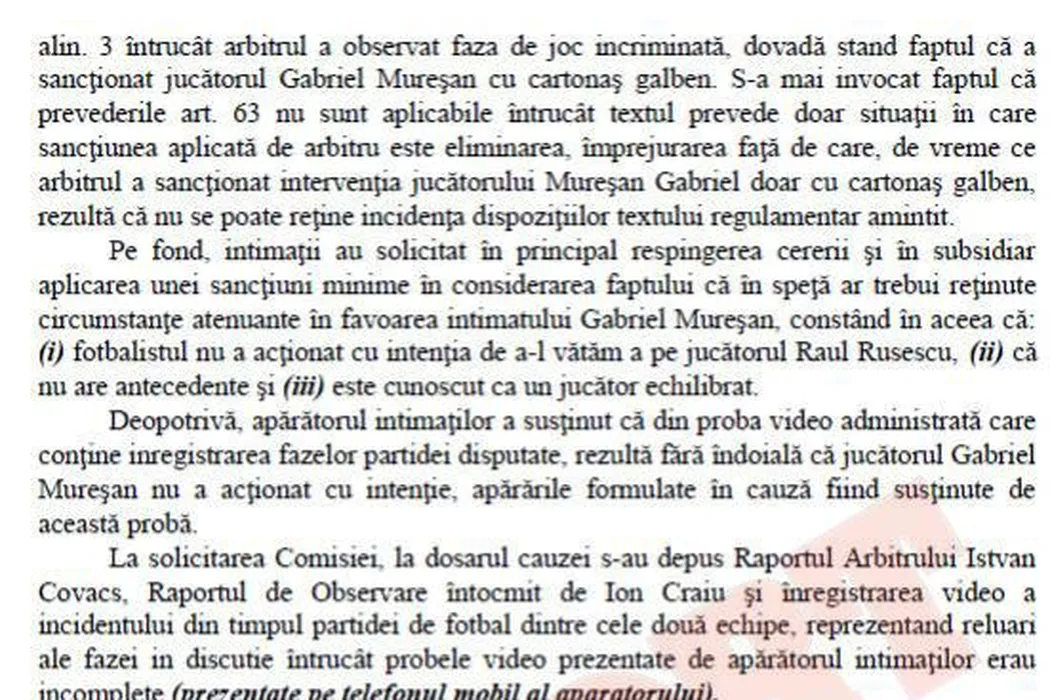 FOTO EXCLUSIV | Motivarea Comisiei de Disciplină. De ce a fost suspendat inițial Mureșan 16 etape: „Kovacs n-a observat concret faza de joc”. Burleanu cere schimbări la Comisia de Recurs: „Nu e prima decizie care ne dă semne de întrebare”