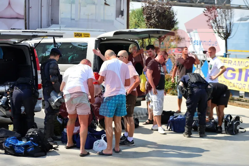 FOTO EXCLUSIV: O parte dintre fanii Legiei, opriți de jandarmi la intrarea în București! 13 suporteri polonezi au fost reținuți și duși la secție