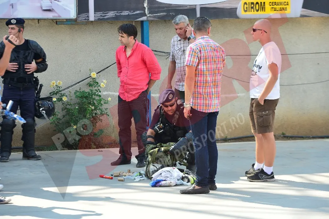 FOTO EXCLUSIV: O parte dintre fanii Legiei, opriți de jandarmi la intrarea în București! 13 suporteri polonezi au fost reținuți și duși la secție
