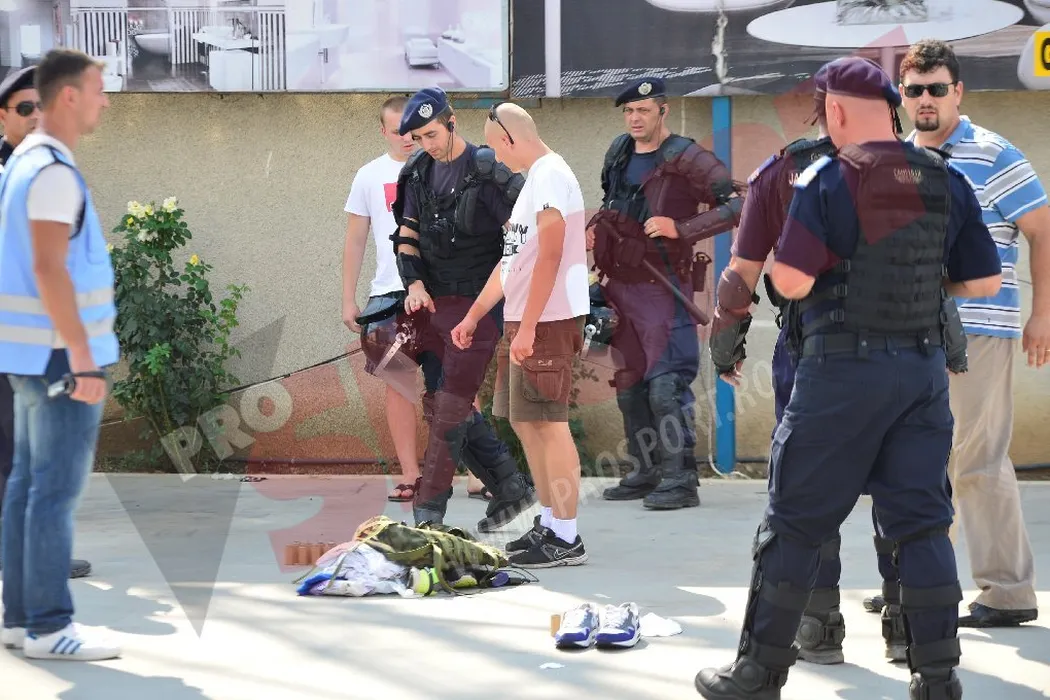 FOTO EXCLUSIV: O parte dintre fanii Legiei, opriți de jandarmi la intrarea în București! 13 suporteri polonezi au fost reținuți și duși la secție