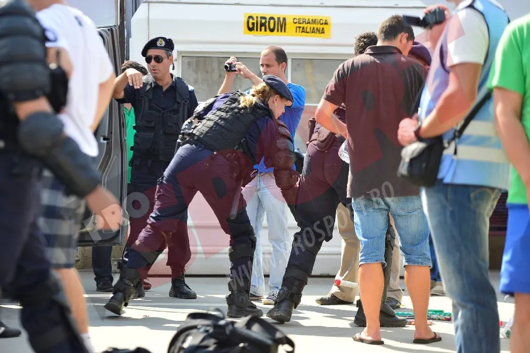 FOTO EXCLUSIV: O parte dintre fanii Legiei, opriți de jandarmi la intrarea în București! 13 suporteri polonezi au fost reținuți și duși la secție