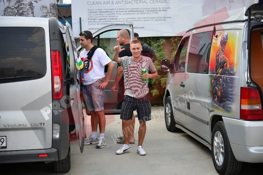 FOTO EXCLUSIV: O parte dintre fanii Legiei, opriți de jandarmi la intrarea în București! 13 suporteri polonezi au fost reținuți și duși la secție