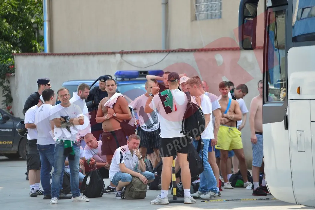 FOTO EXCLUSIV: O parte dintre fanii Legiei, opriți de jandarmi la intrarea în București! 13 suporteri polonezi au fost reținuți și duși la secție