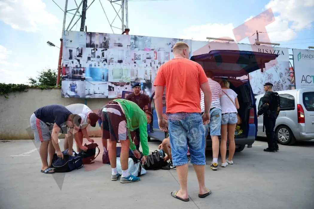 FOTO EXCLUSIV: O parte dintre fanii Legiei, opriți de jandarmi la intrarea în București! 13 suporteri polonezi au fost reținuți și duși la secție