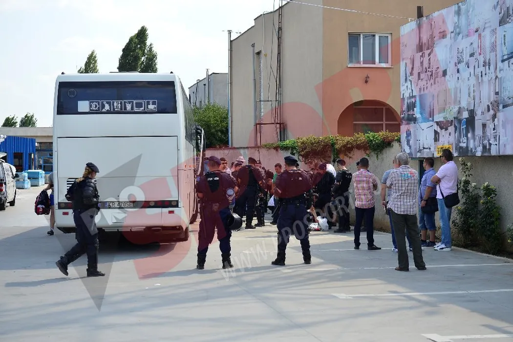 FOTO EXCLUSIV: O parte dintre fanii Legiei, opriți de jandarmi la intrarea în București! 13 suporteri polonezi au fost reținuți și duși la secție