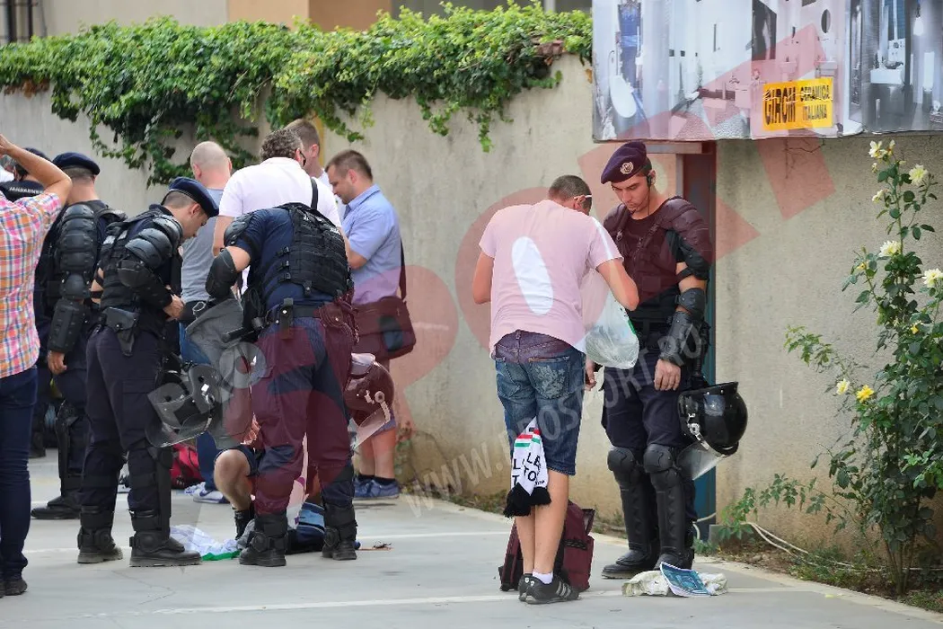 FOTO EXCLUSIV: O parte dintre fanii Legiei, opriți de jandarmi la intrarea în București! 13 suporteri polonezi au fost reținuți și duși la secție