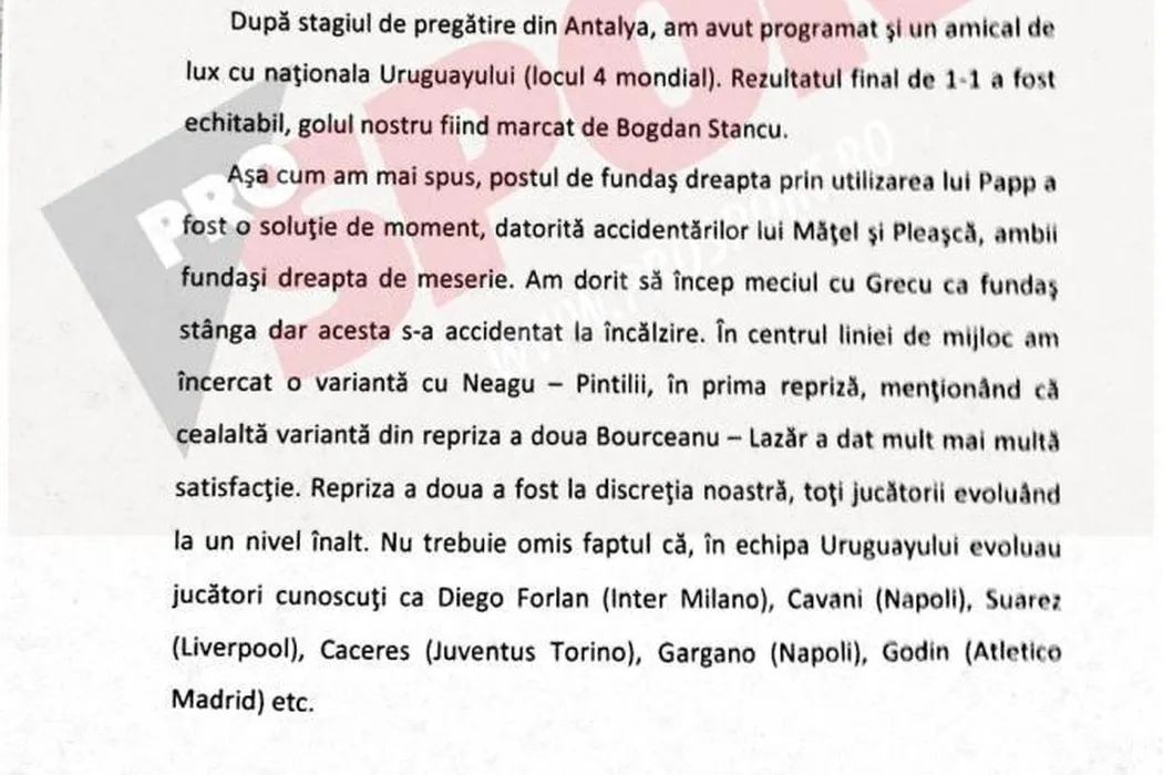 FOTO EXCLUSIV – Raportul lui Pițurcă pentru activitatea de la națională: „Echipa era în derivă. Retragerea lui Săpunaru a fost benefică” De ce s-a ratat calificarea