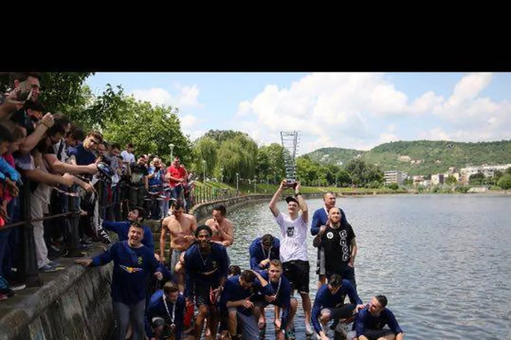 FOTO | Explozie de bucurie la Cluj. Baschetbaliștii de la „U” au sărit în Someș după ce au devenit campioni ai României
