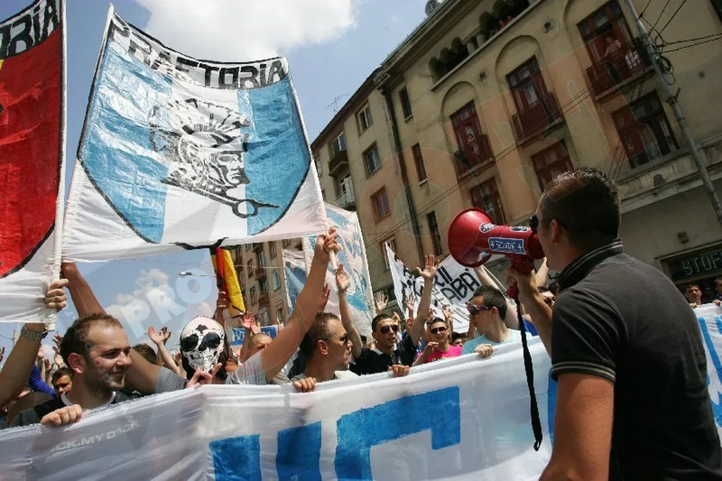FOTO Fani din Alba-Iulia au venit la mitingul anti-Mititelu** din Craiova! „Ai distrus o legendă!”