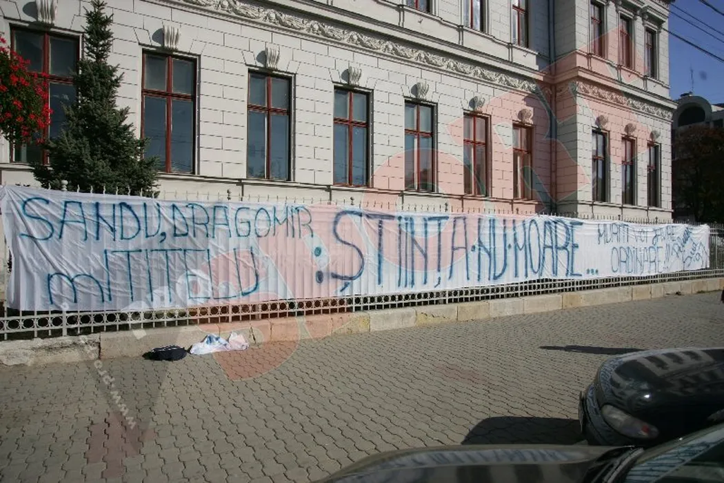 FOTO Fanii Științei continuă protestele:** „Sandu, Dragomir, Mititelu: Știința nu moare, muriți voi javre ordinare!!!”