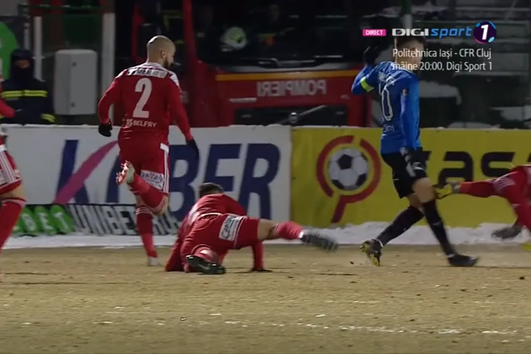 FOTO | Fault grosolan asupra lui Ianis Hagi! Piciorul i s-a îndoit, după ce Viera i-a pus talpa pe genunchi, dar centralul nu a dat nici măcar fault. MM Stoica a intervenit