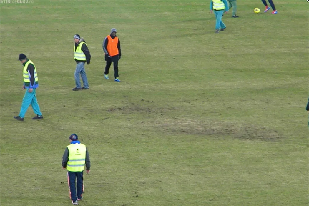 FOTO** Gazonul de pe Cluj Arena a cedat după numai 45 de minute de joc! Cum au încercat organizatorii să-l repare în pauză