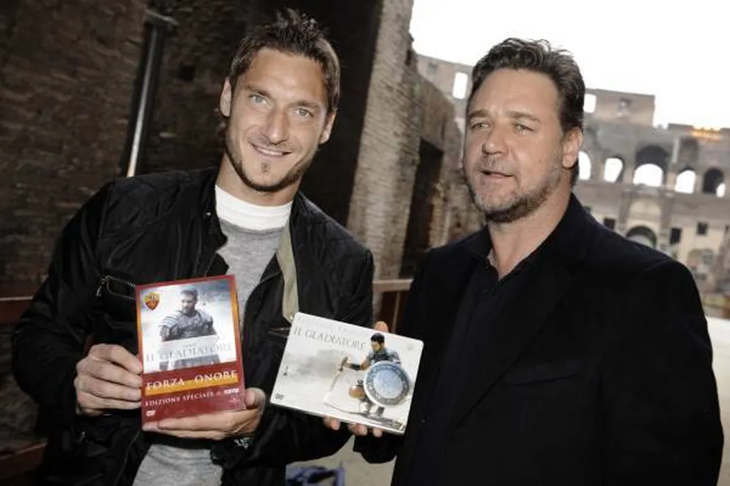 FOTO** ‘Gladiatorii’, între ei! Totti a facut schimb de tricouri cu Russell Crowe