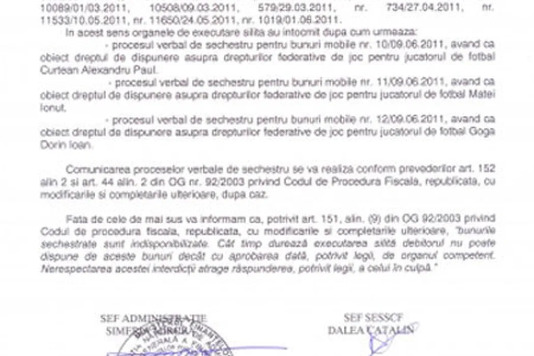 FOTO** Iată DOVADA că ANAF a pus sechestru pe 3 dintre jucătorii lui Poli! Șeful Fiscului din Timiș a greșit însă lista