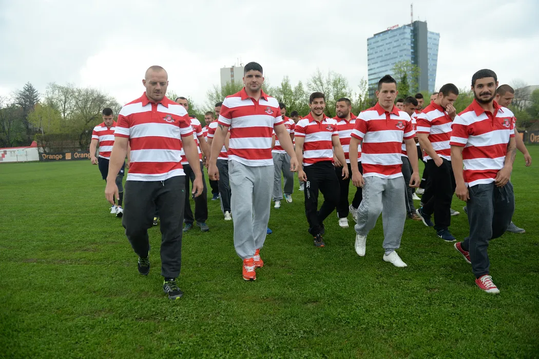 FOTO Inițiativă unică în „Ștefan cel Mare”. Ultrașii îmbracă sportivii. Peluza Cătălin Hîldan asigură echipamentul de prezentare al echipei de rugby.