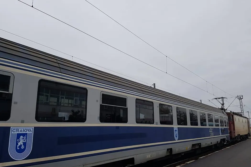 FOTO | Lotul Craiovei a plecat cu trenul spre București, pentru derby-ul cu Dinamo. Gică Craioveanu a luat mascota și a ținut să fie alături de jucători. „Nașii” au primit mici atenții