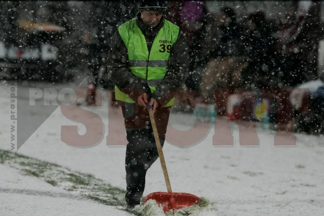 FOTO / Meciul CFR Cluj-Rapid a fost întrerupt 10 minute din cauza ninsorii abundente!**