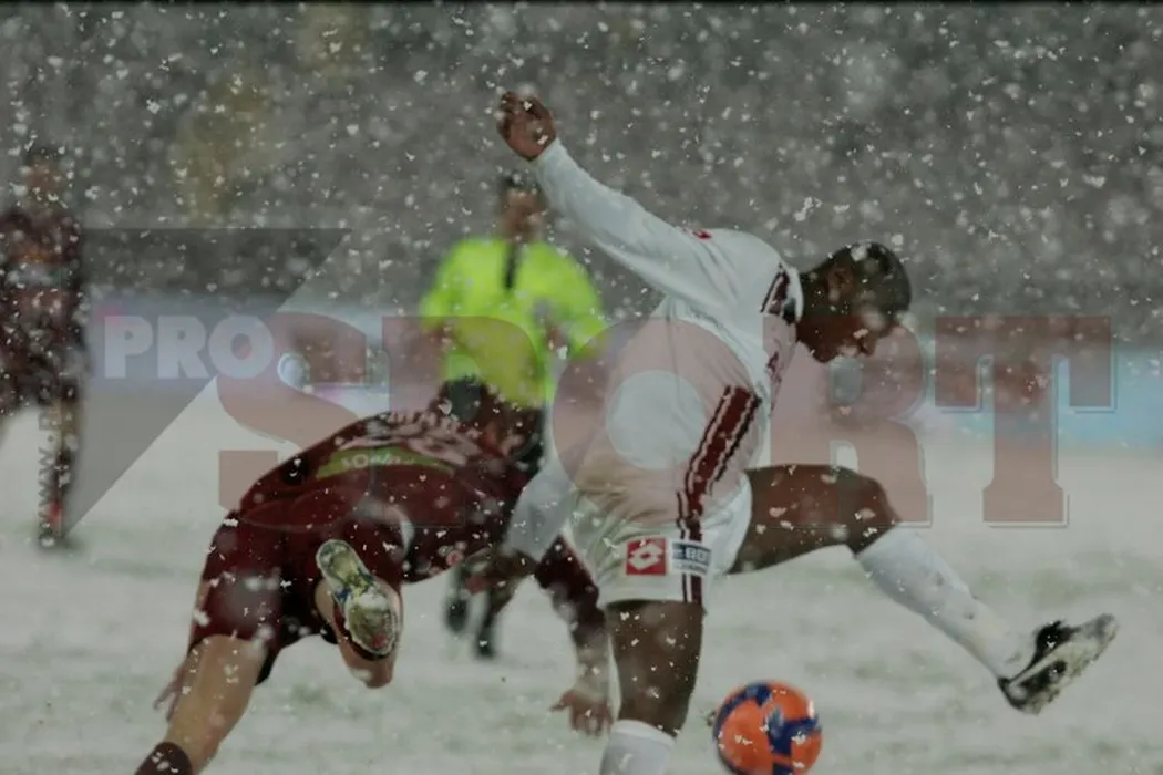 FOTO / Meciul CFR Cluj-Rapid a fost întrerupt 10 minute din cauza ninsorii abundente!**