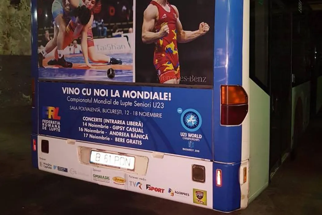 FOTO | Metoda autobuzul. Federația de Lupte introduce Bucureștiul pe harta orașelor care iubesc sportul. Promovare excelentă a CM U23 de la Polivalentă