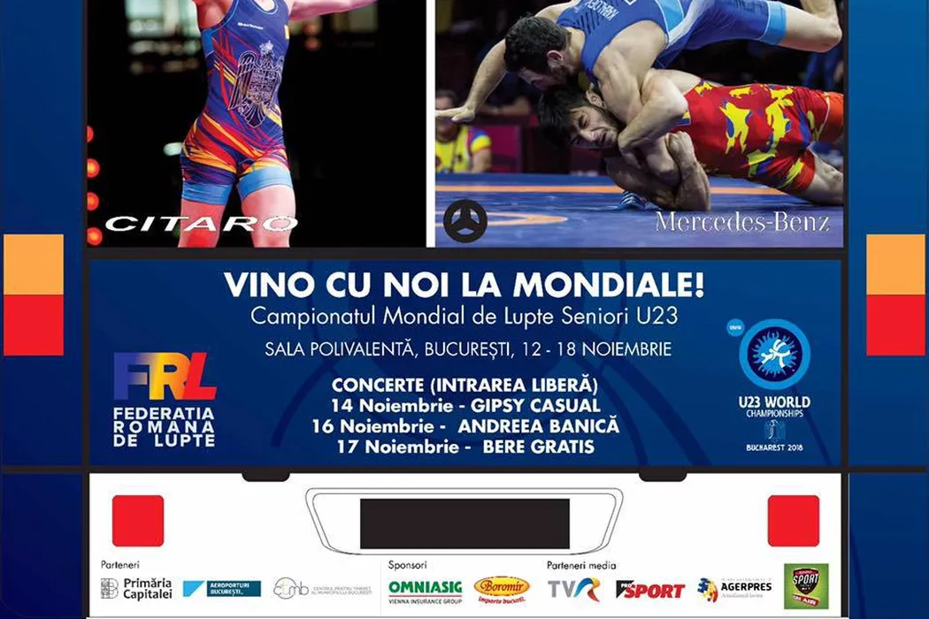 FOTO | Metoda autobuzul. Federația de Lupte introduce Bucureștiul pe harta orașelor care iubesc sportul. Promovare excelentă a CM U23 de la Polivalentă