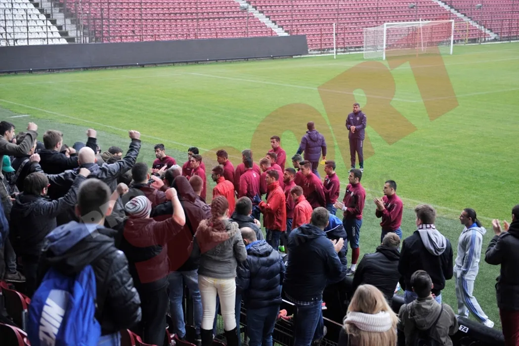 FOTO | Miting în Gruia. Fanii au cerut explicații conducerii și i-au rugat pe jucători să nu plece. Mureșan: „CFR-ul nu moare!”