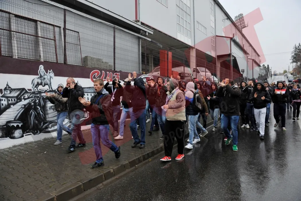 FOTO | Miting în Gruia. Fanii au cerut explicații conducerii și i-au rugat pe jucători să nu plece. Mureșan: „CFR-ul nu moare!”