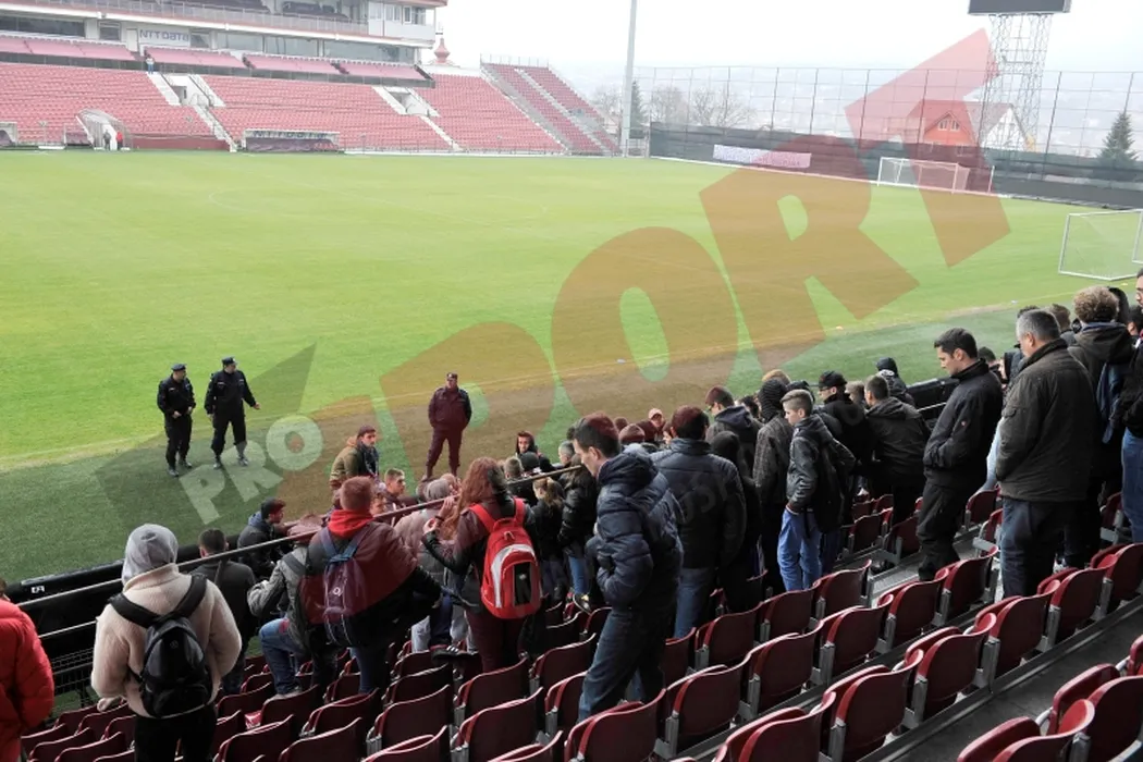 FOTO | Miting în Gruia. Fanii au cerut explicații conducerii și i-au rugat pe jucători să nu plece. Mureșan: „CFR-ul nu moare!”
