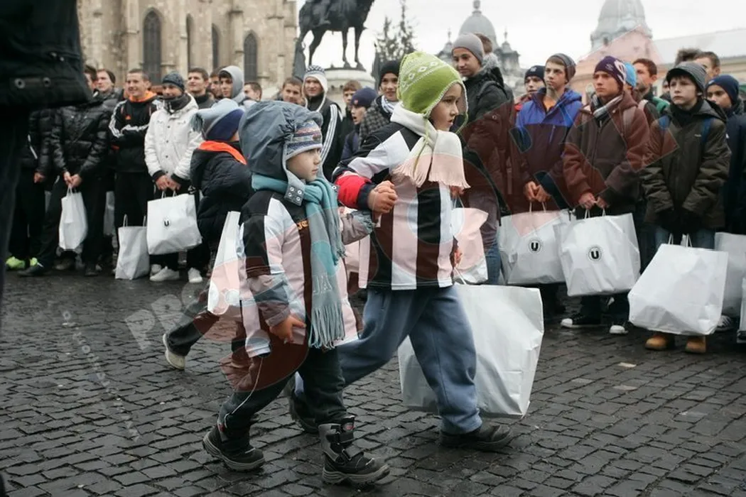 FOTO Moșul în alb și negru! Fotbaliștii lui „U” au împărțit cadouri copiilor