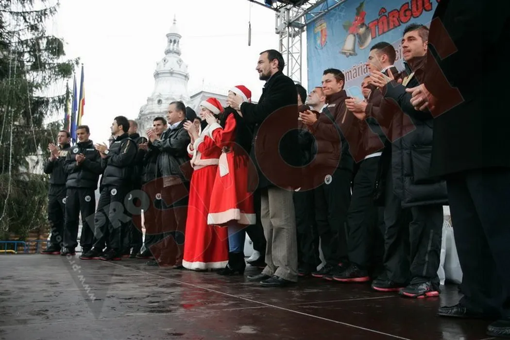 FOTO Moșul în alb și negru! Fotbaliștii lui „U” au împărțit cadouri copiilor