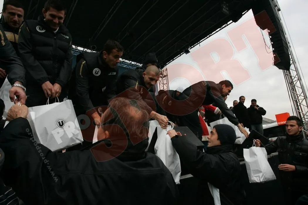 FOTO Moșul în alb și negru! Fotbaliștii lui „U” au împărțit cadouri copiilor