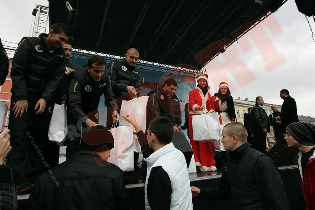 FOTO Moșul în alb și negru! Fotbaliștii lui „U” au împărțit cadouri copiilor