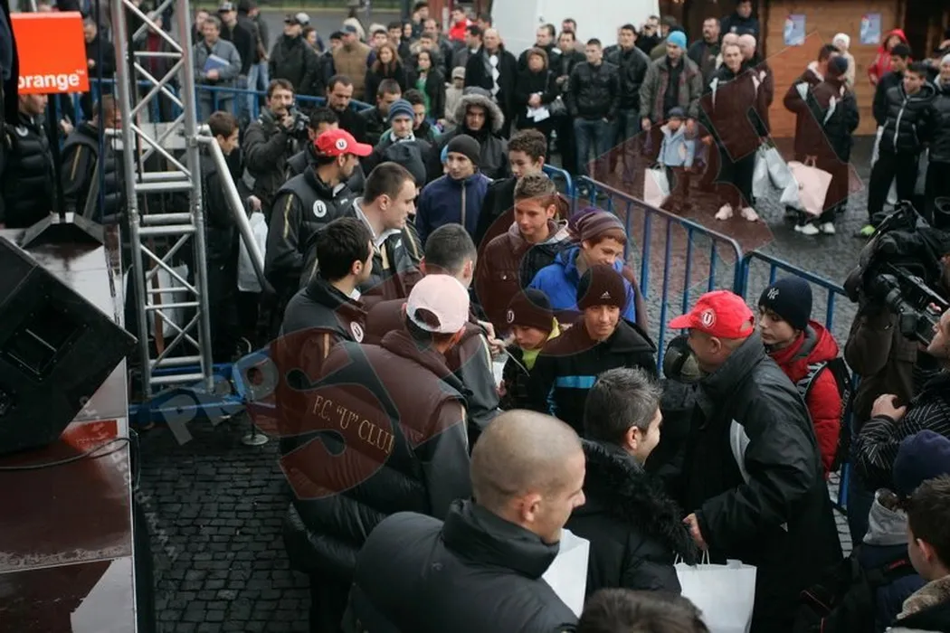 FOTO Moșul în alb și negru! Fotbaliștii lui „U” au împărțit cadouri copiilor