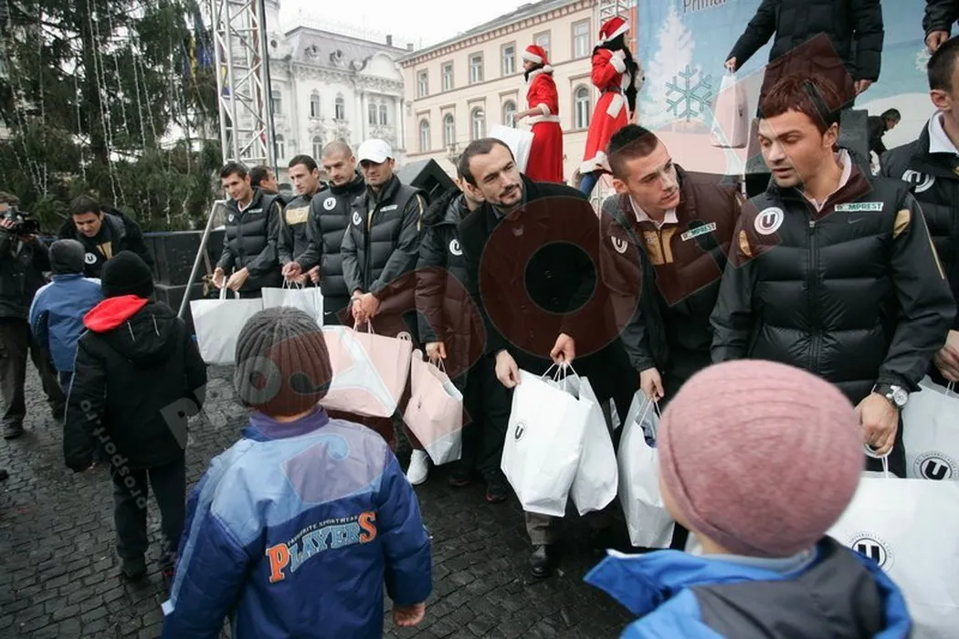 FOTO Moșul în alb și negru! Fotbaliștii lui „U” au împărțit cadouri copiilor