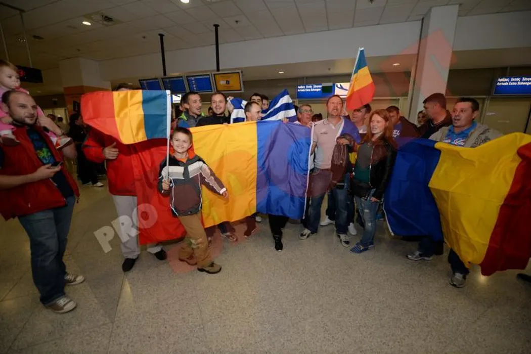 FOTO: Naționala a ajuns în Grecia, peste 30 de suporteri au așteptat-o la aeroport: „Să ne duceți la Rio!”