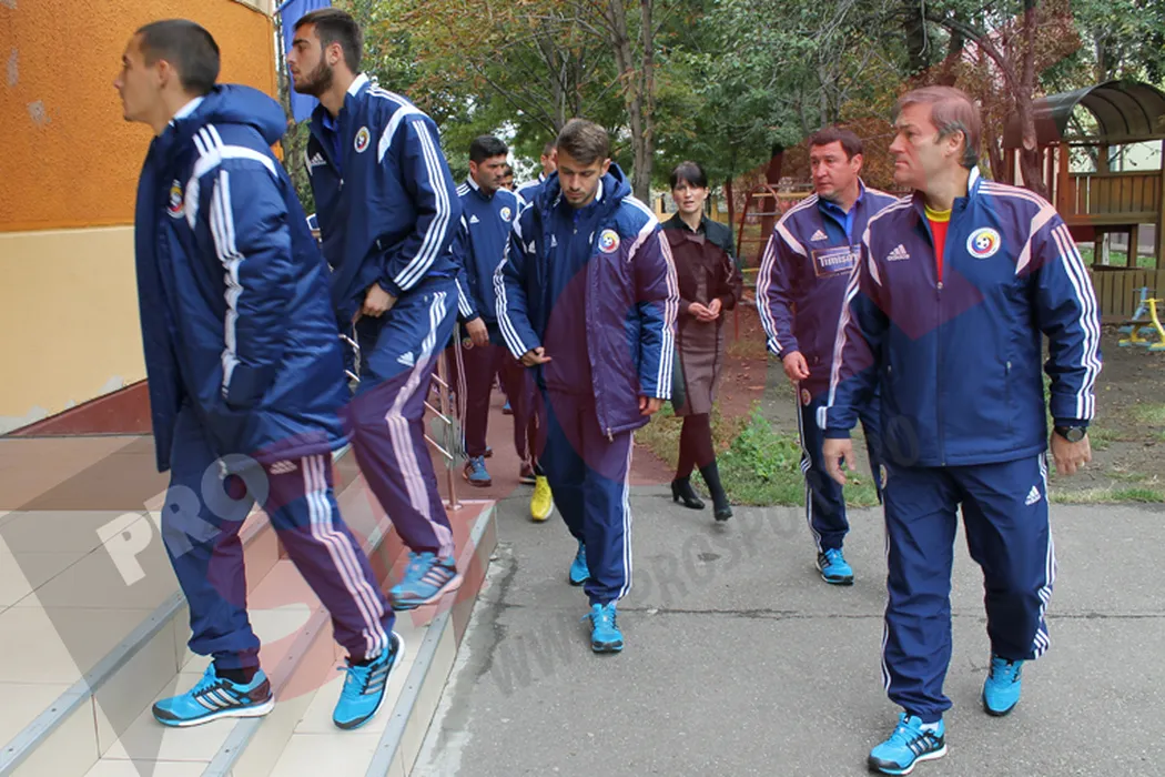 FOTO | Naționala de tineret, în vizită la un liceu din Buzău pentru copii cu deficiențe de auz. Moldovan: „Băieți, trebuie să ne dăm seama câte probleme sunt în viață”