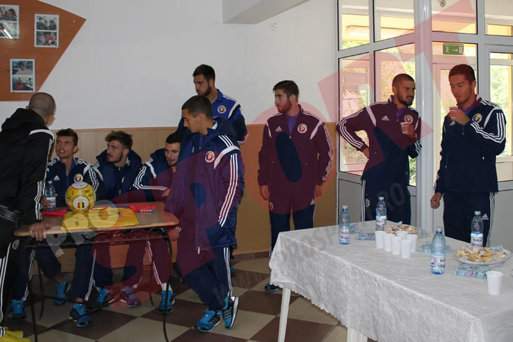 FOTO | Naționala de tineret, în vizită la un liceu din Buzău pentru copii cu deficiențe de auz. Moldovan: „Băieți, trebuie să ne dăm seama câte probleme sunt în viață”
