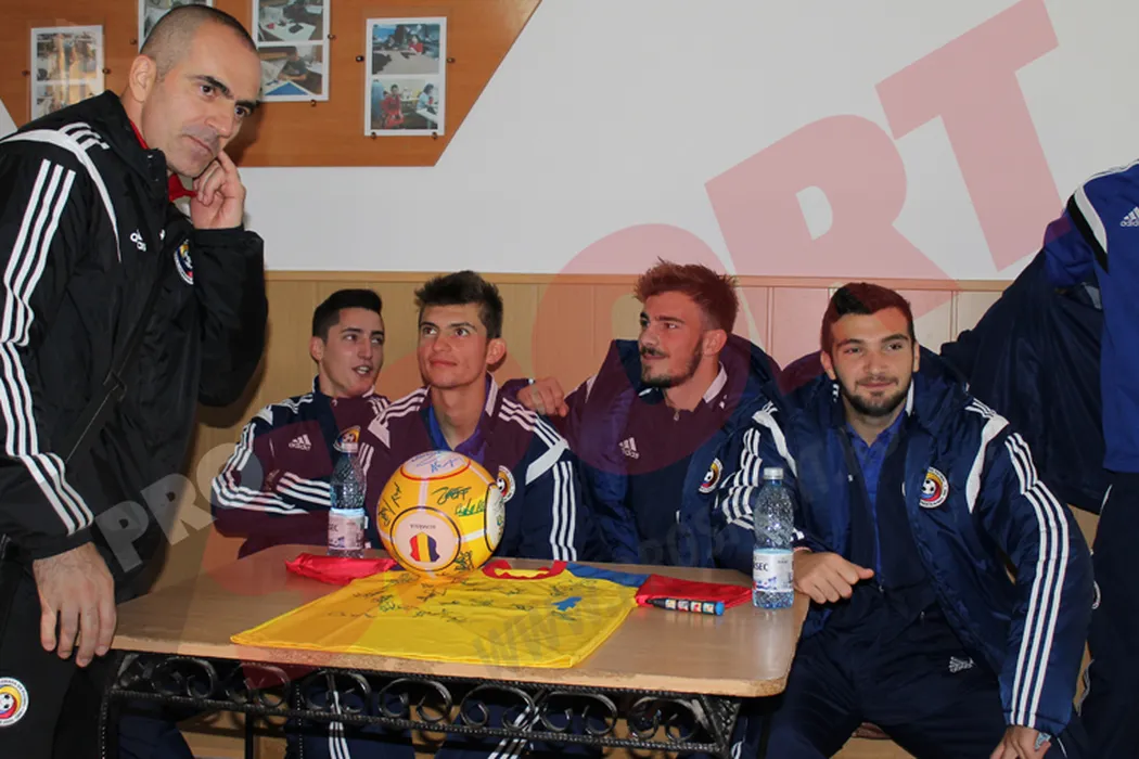 FOTO | Naționala de tineret, în vizită la un liceu din Buzău pentru copii cu deficiențe de auz. Moldovan: „Băieți, trebuie să ne dăm seama câte probleme sunt în viață”