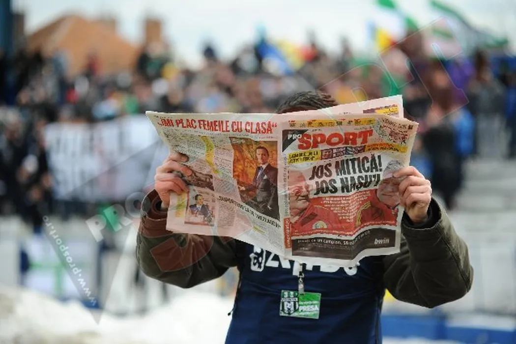 FOTO Nici Sibiul nu-i mai suportă pe Sandu și Dragomir!** Fanii au afișat pagina-manifest din ProSport și la meciul Voința-Astra 1-0