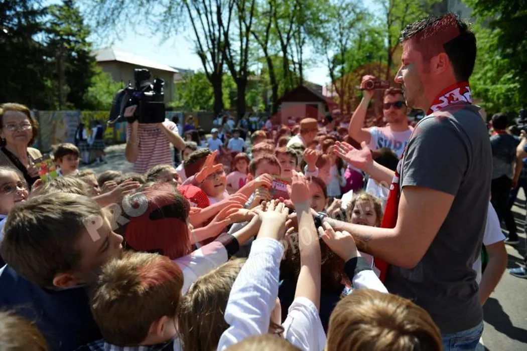 FOTO Pepiniera de suporteri!** Peste 100 de puști din clasele primare s-au înghesuit pentru poze și autografe cu elevii lui Țălnar