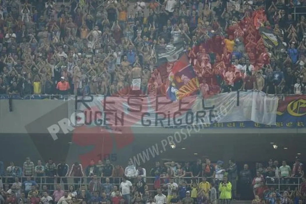 FOTO Povestea celui mai controversat banner de la Steaua – Rapid!** Momentul în care toată lumea s-a întrebat: „Cine e personajul și ce a făcut să merite asta?”